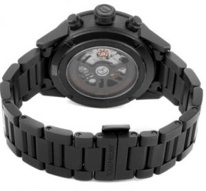 Dodici componenti di questi orologi replica Tag Heuer hanno un design modulare, tra cui anse, cassa centrale, castone, coperchio inferiore, corona e base, pulsanti, guarnizioni tra il centro e la lunetta e vetro zaffiri superiore e inferiore. La cosa più interessante è il quadrante scheletro nero, che fa intravedere il movimento interno sul davanti.